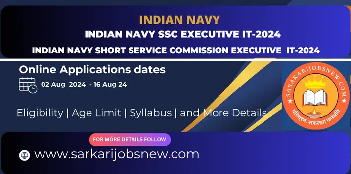 Indian Navy Invites applications (Indian Navy SSC Executive IT-2024) from unmarried eligible men & women candidates for grant of Short Service Commission (SSC) in Information Technology (Executive Branch) under Special Naval Orientation Course for course commencing Jan 2025. Candidates must fulfill conditions of nationality as laid down by the Government of India. Eligible candidates can apply Online from 01 Aug 2024 to 31 Aug 2024 on JSSC Postal. Please read the notification of Indian Navy SSC Executive IT-2024 for more details on Eligibility conditions, Post Information, Age limit, etc.